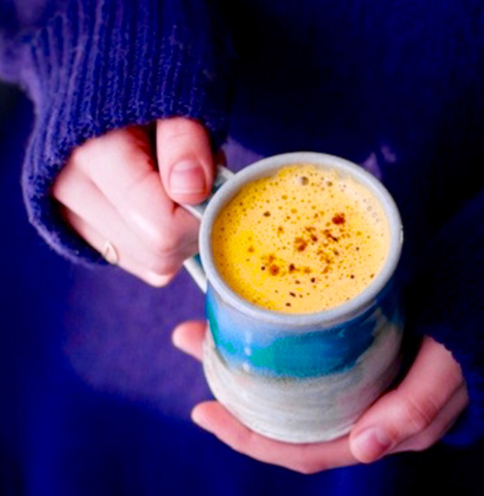 - Turmeric latte: Heat 1 cup of milk (dairy or non) in a sauce pan. Add ½ teaspoon turmeric, ½ tablespoon ginger and ¼ teaspoon vanilla extract. Over medium-high heat, whisk vigorously until frothy and slightly thickened. Do not allow to boil. Sweeten with a little honey or maple syrup, if desired.