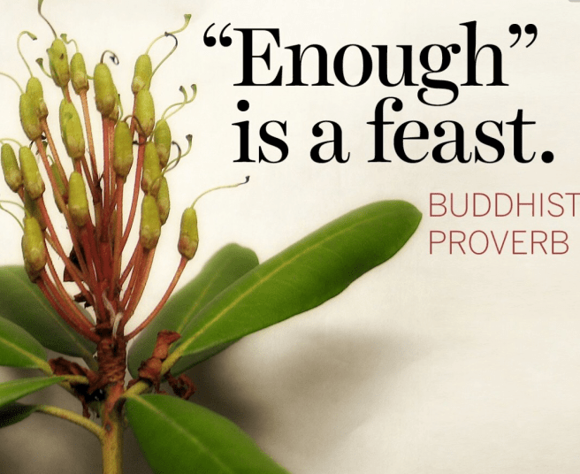 Take a moment today to look around you. Think about what might be enough. I’m not spreading guilt here – Not asking anyone to take on martyrdom! If you’ve worked hard for that newer model car and it will make your life better, by all means, go for it! Just be aware of the importance and emotional affinity we often attach to luxuries. Learn to appreciate having enough.