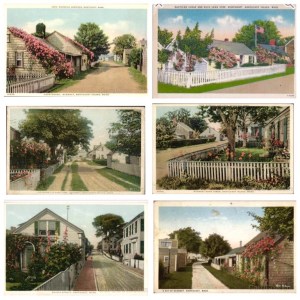 You see, my nana had friends who vacationed and sent her postcards. That’s what they did back then: They sent each other postcards. There were notes from Bermuda and Myrtle Beach. There were color photos with scrawled handwriting on the back from England and Florida…. Vermont and Maine. But my most favorite were the postcards from Nantucket. They showed quaint little seaside cottages with weathered shingles obscured by climbing roses – Red ones, pink ones – beautiful roses. I could almost smell their gentle scent as it mingled with the salty air.