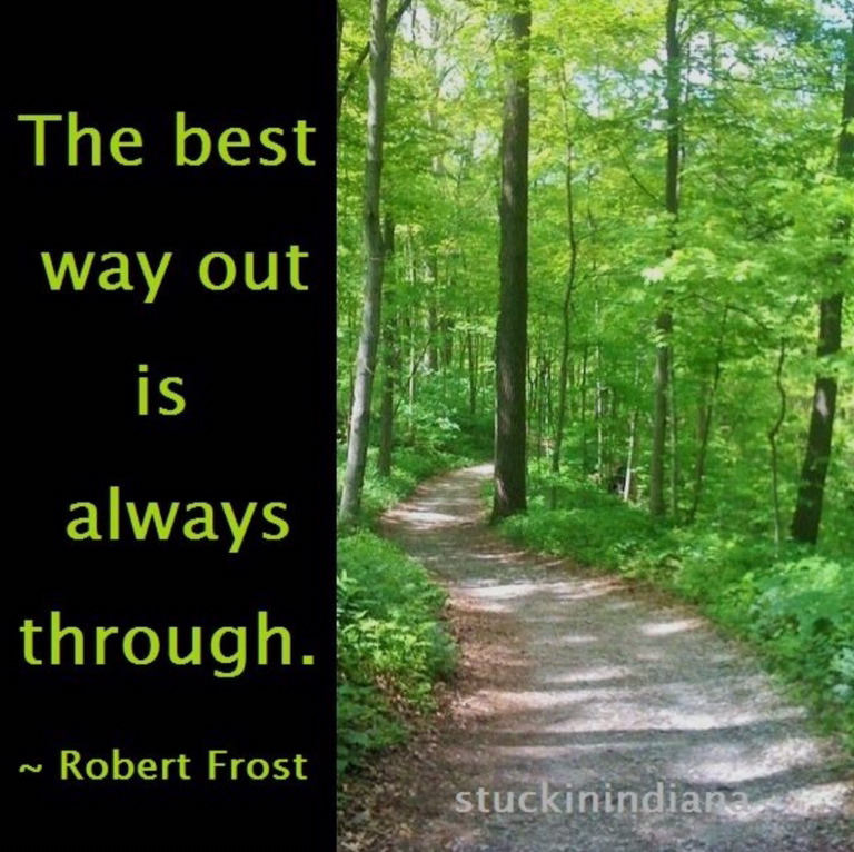 My goal this September is to move forward, to accept that things change. Robert Frost said “The best way out is always through.” Instead of standing at the edge of the forest or wandering hopelessly in the middle, we should hold our heads up and forge a path – straight through the middle, until we emerge on the other side.