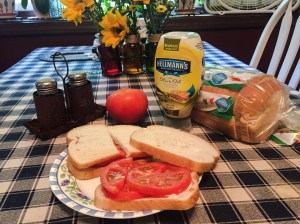 Yesterday, I made myself a special treat or lunch: Tomato sandwiches. Earlier in the week, I made a special trip to a local farm stand for the tomatoes – perfect, round, bright red. I used to grow my own. But the longer I live here, the taller the trees become and the less sunlight there is to grow much of anything edible. (Not that I ever had a green thumb – If you know me at all, you know that’s true.) My mom always grew beautiful tomatoes. So did Grampa Wilson. But they’re both gone now. So, I buy them.