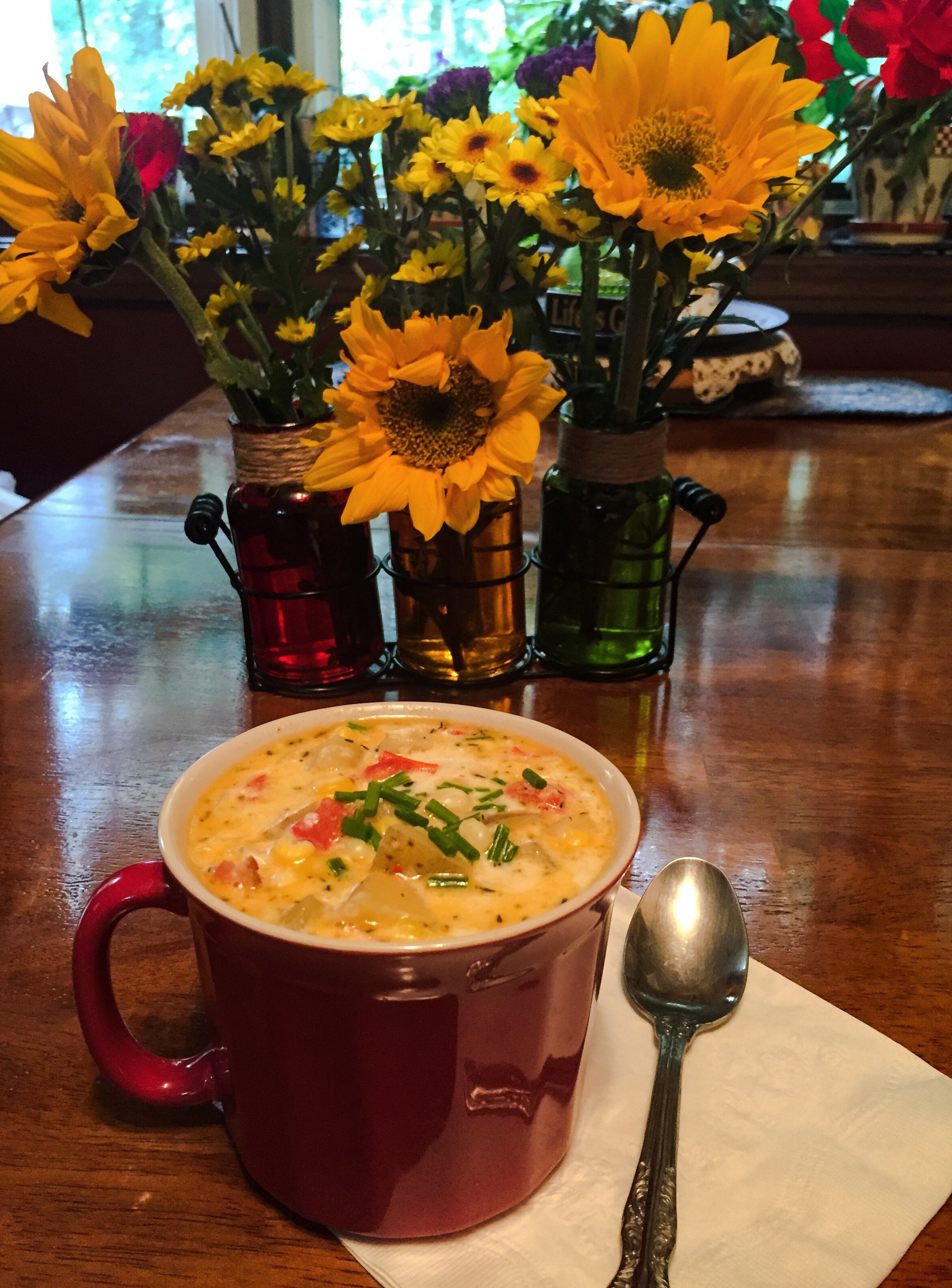 The growing season for fresh produce is too short in southern New England. While I was at the farm, I picked up some corn on the cob. In a few weeks, that, too, will be but a memory. I made corn chowder – another seasonal favorite that brings comfort. Just like Mom used to make. Well, sort of. I never have been able to follow a recipe without a little creative free-styling.
